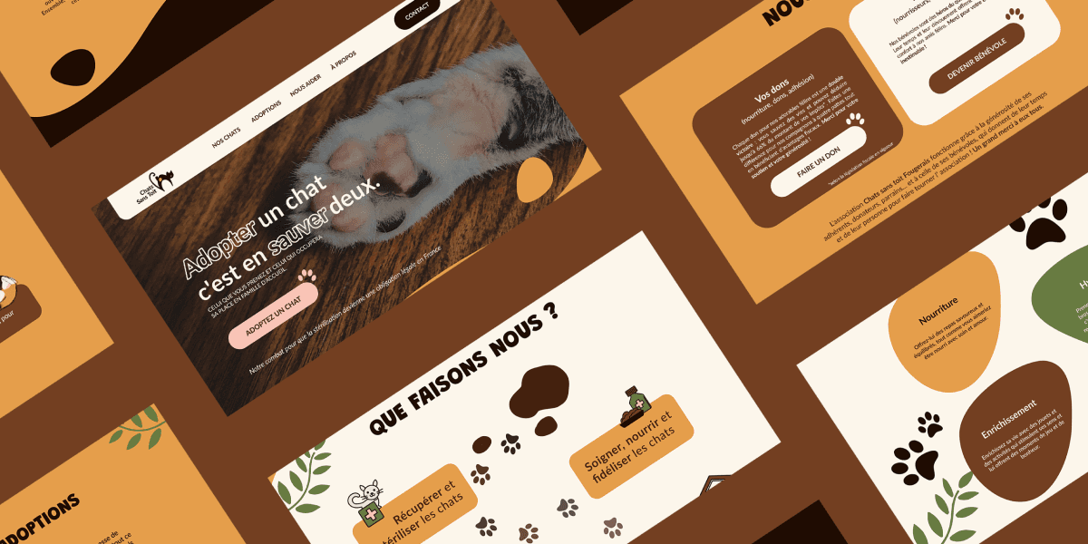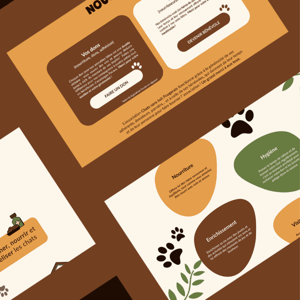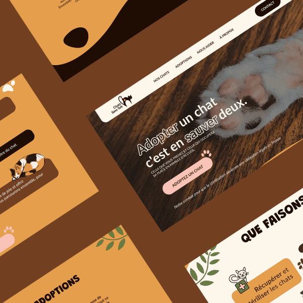 Dans le cadre d’un hackathon solidaire inter-écoles remporté avec prix du jury et prix du public, nous avons collaboré à la création d’un site vitrine responsive et engageant pour l’association "Chats Sans Toit Fougerais", basée à Fougères. L’objectif était de refléter les valeurs bienveillantes de l’association tout en sensibilisant à la cause des chats abandonnés.